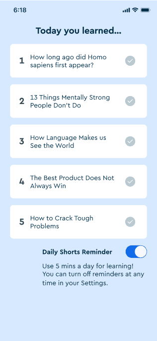 Blinkist users don’t engage with the app in a meaningful way every day. We wanted to find a way to make the content engaging enough to really make using the app a daily habit.