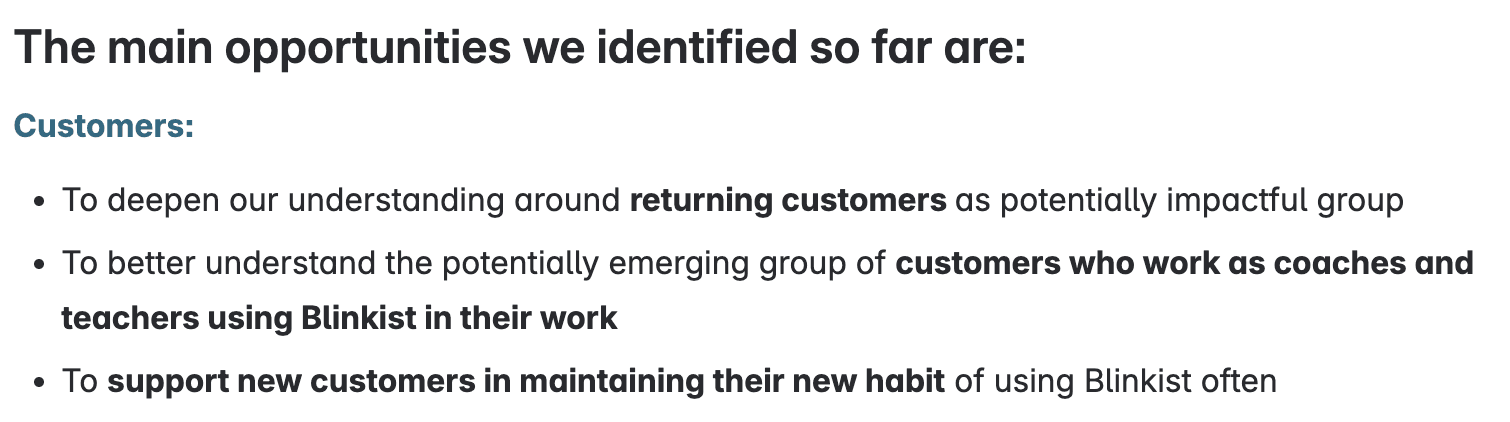 We focused on the engagement with the Blinkist mobile app because data showed us the more engaged users are, the more likely they keep their subscription.